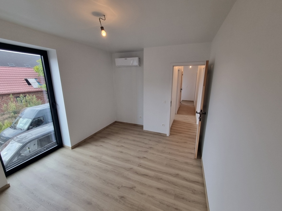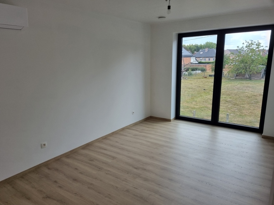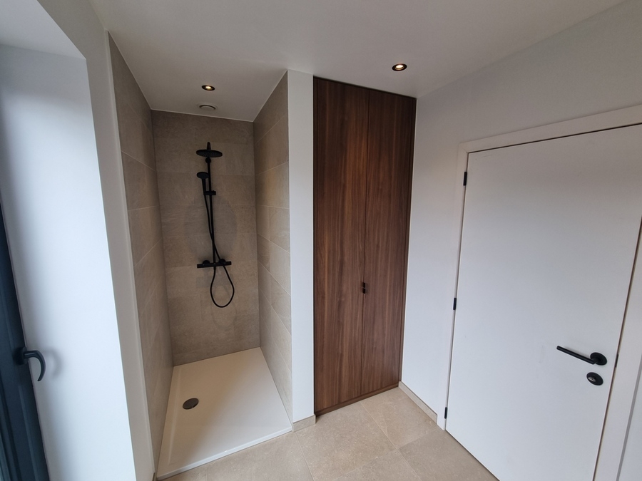 Op het gelijkvloers bevindt zich een inkomhal met gastentoilet, een praktische berging en een lichtrijke woonkamer met open keuken. De volledig ingerichte keuken met eiland biedt directe toegang tot het terras en een prachtig zicht op de tuin. Op de eerste verdieping vind je drie slaapkamers, allen uitgerust met airconditioning. Verder is er een apart toilet en een moderne badkamer met inloopdouche, dubbele wastafel en een ingemaakte kast. De woning beschikt tot slot over een zeer ruime zolder, ideaal als extra bergruimte.